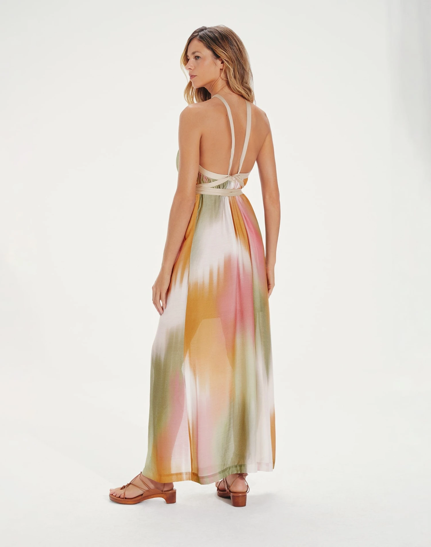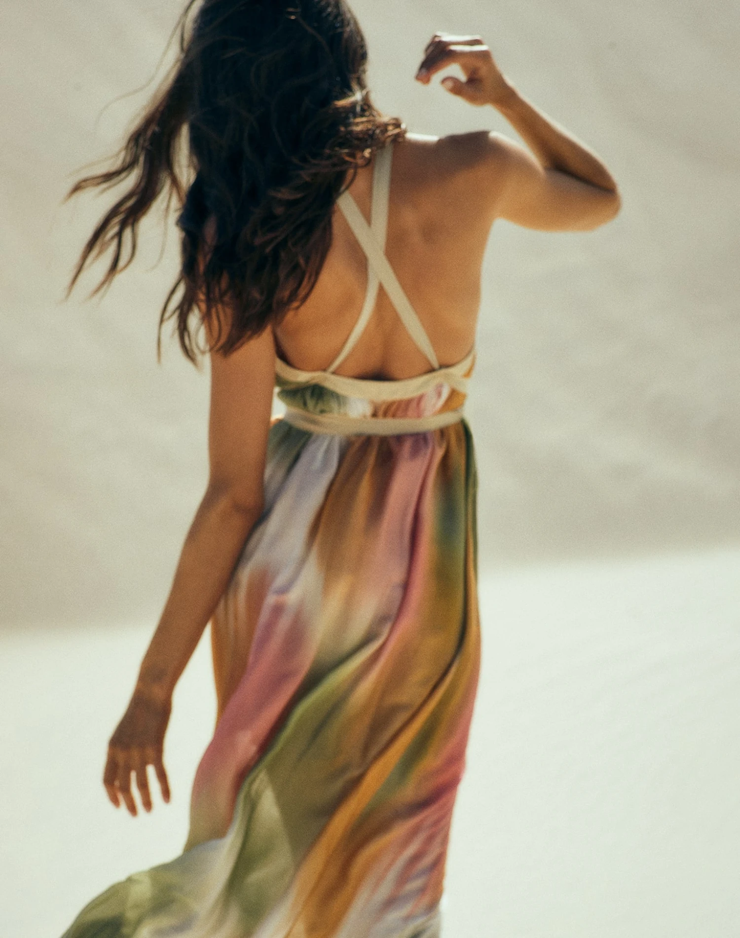 Never miss an opportunity to travel in style with the Audrey Detail Long Dress – crafted in a delightful silk blend fabric with a sultry plunging neckline, low back, and versatile extra long straps with 24k gold end caps that can be adjusted to liking to give you a luxurious look that you have been craving.
