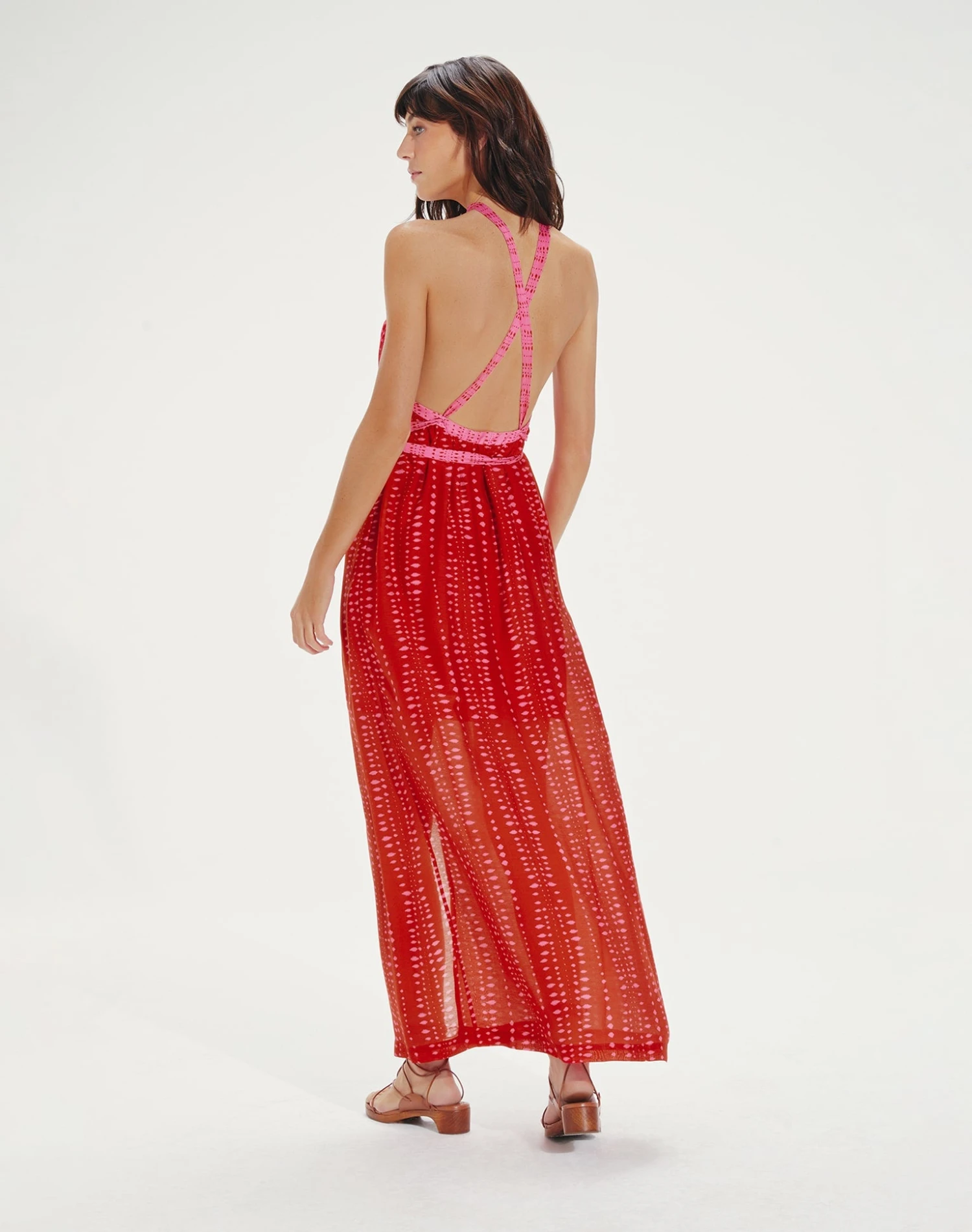 Never miss an opportunity to travel in style with the Audrey Detail Long Dress – crafted in a delightful silk blend fabric with a sultry plunging neckline, low back, and versatile extra long straps with 24k gold end caps that can be adjusted to liking to give you a luxurious look.
