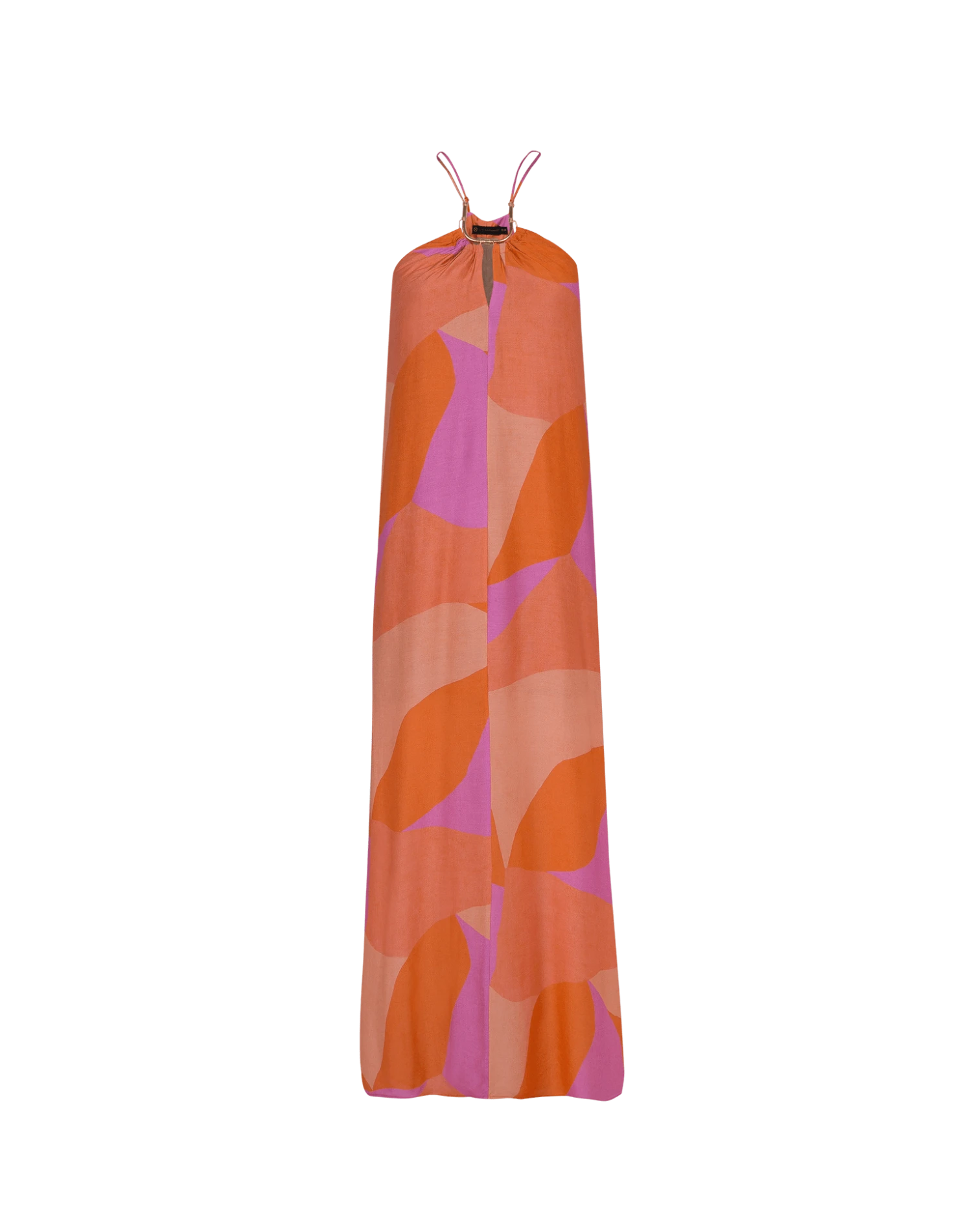 Long flowing dress with metal detail in a āUā shape and with thin adjustable straps for a classic ViX moment look