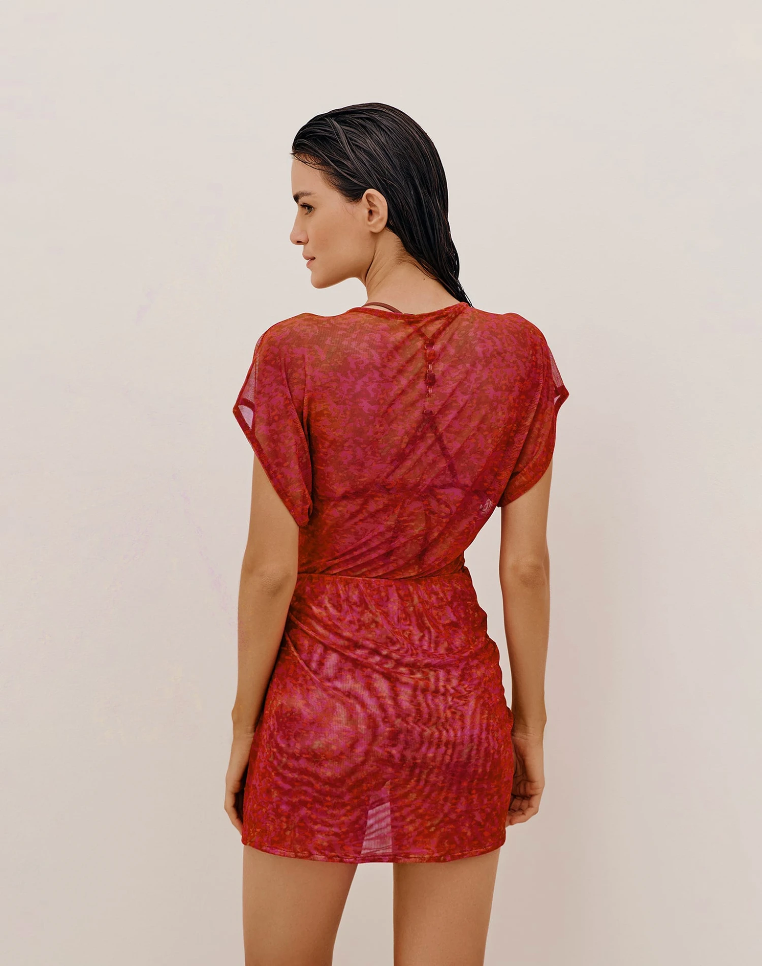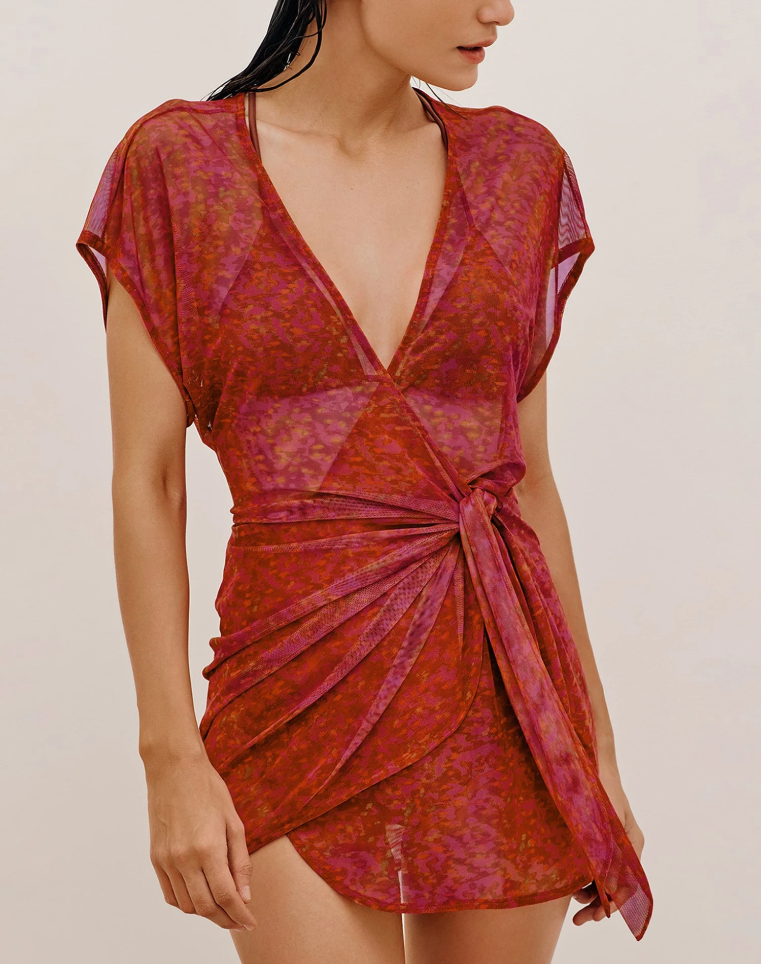 Cover your swimwear with this vibrant wrap-around dress for a glamorous resort outfit. This stylish cover up is crafted in a luscious, breathable, silky soft mesh fabric for a wrinkle-free put-together beachy style.