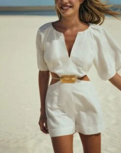 Elevate your everyday essentials with the Janis Detail Short, a tailored bottom that is sure to become a wardrobe favorite. This high-waisted design comes with a twisted rope belt embellished with 24k gold-plated beading and special knots all shaped in a lightweight linen blend fabric for maximum style and comfort.