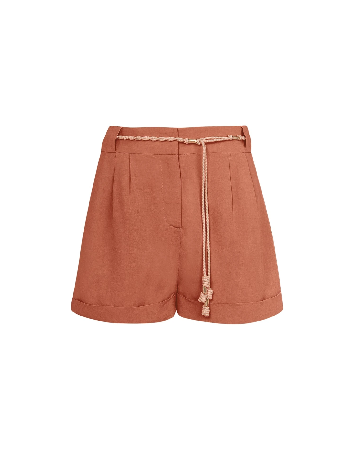 Elevate your everyday essentials with the Janis Detail Short, a tailored bottom that is sure to become a wardrobe favorite. This high-waisted design comes with a twisted rope belt embellished with 24k gold-plated beading and special knots, all shaped in a lightweight linen blend fabric for maximum style and comfort.