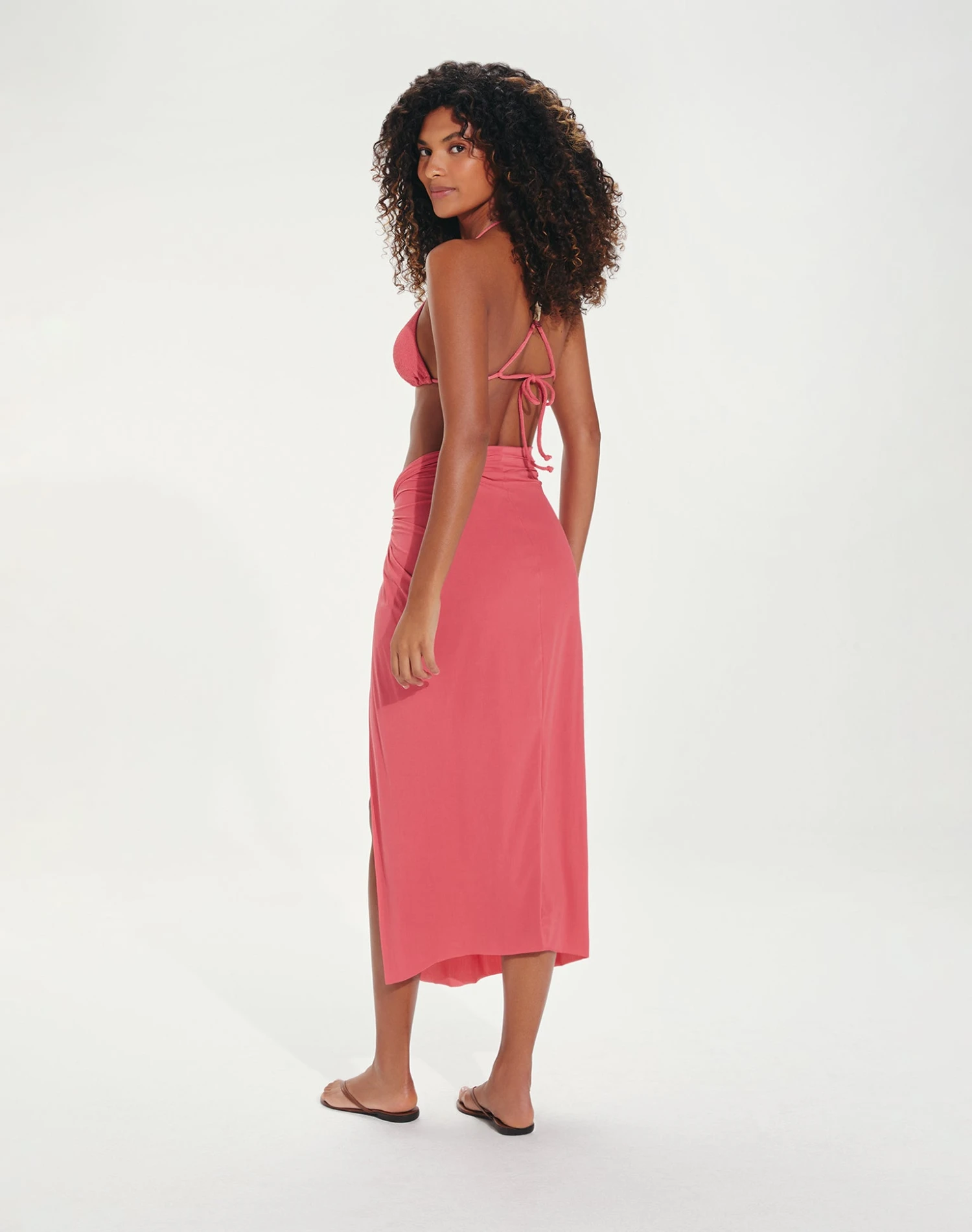 Add an extra layer of femininity to your swimwear with the Karen Midi Skirt. This sultry cover up is designed in our iconic Brazilian lycra, with a knot detail and pronounced side slit, an ideal accessory to compliment your seaside look