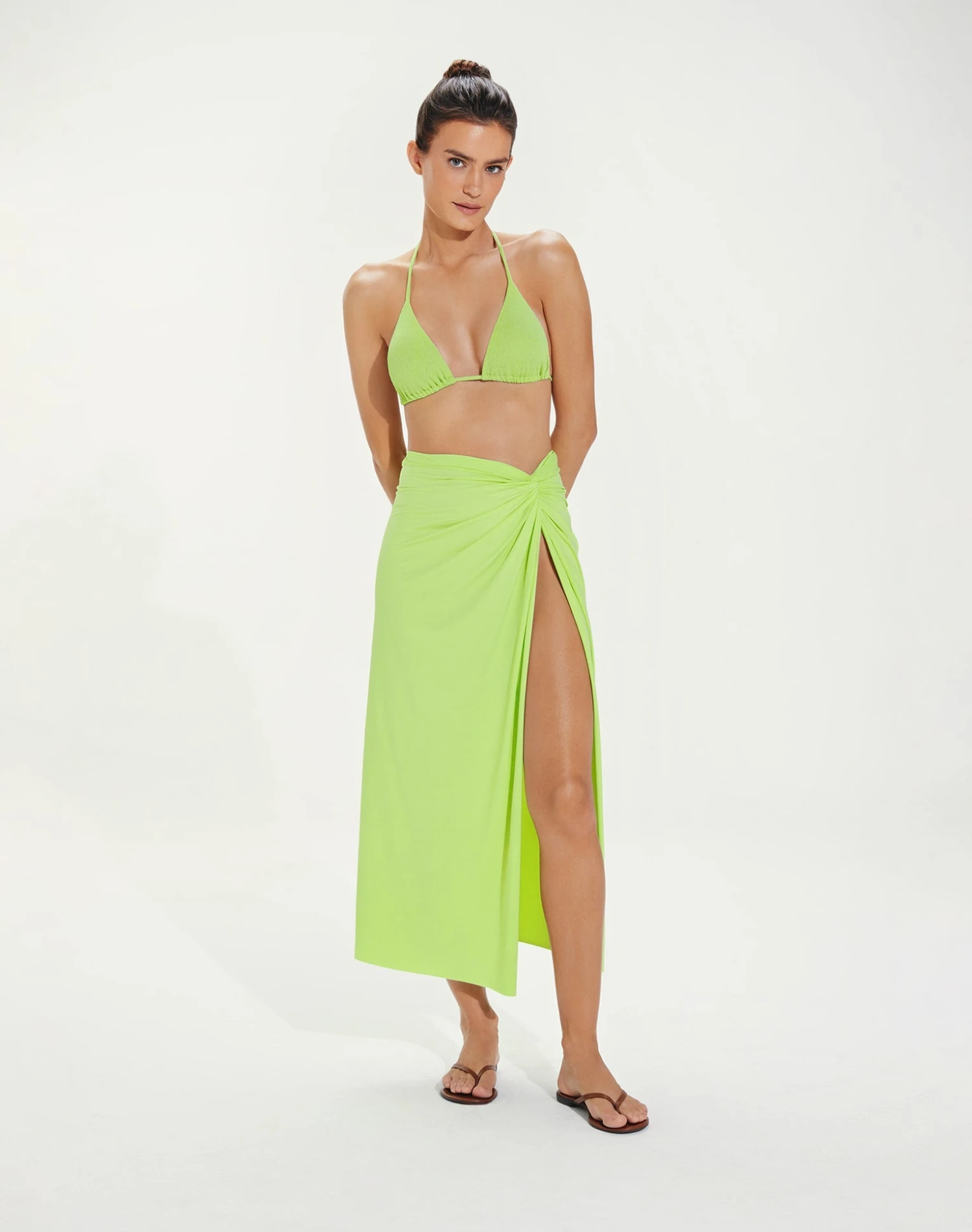 Add an extra layer of femininity to your swimwear with the Karen Midi Skirt. This sultry cover up is designed in our iconic Brazilian lycra, with a knot detail and pronounced side slit, an ideal accessory to compliment your seaside look