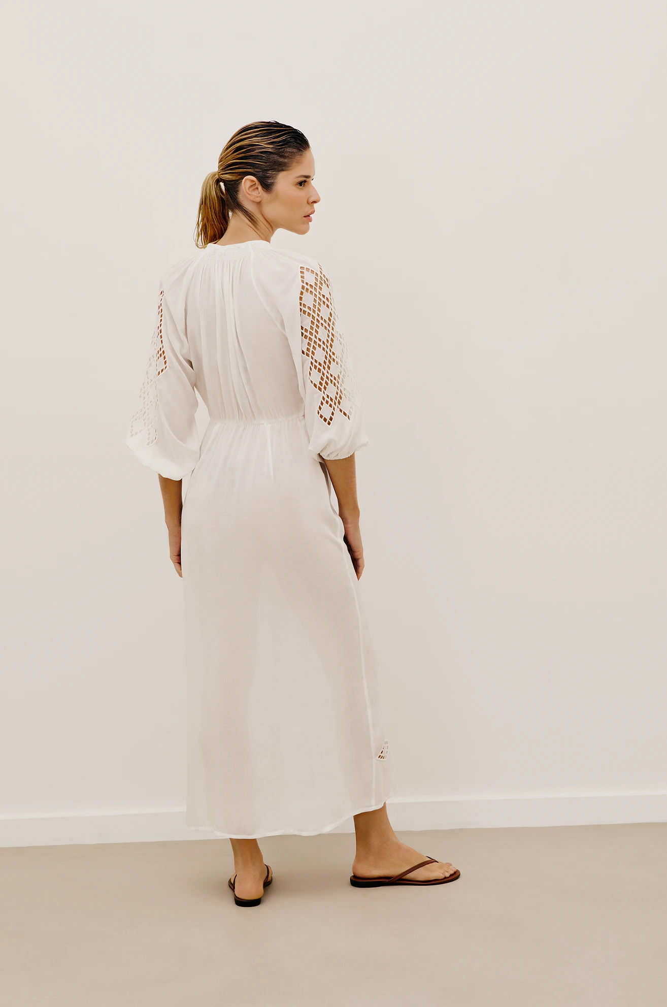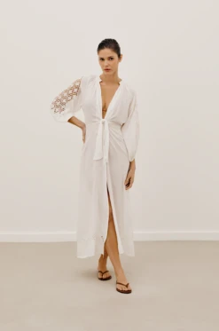 Bring opulence to the pool in the Knot Long Caftan. A gorgeous long cover up crafted with embroidered detailing that will have you emanating style, while accessorizing your favorite swimswear.
