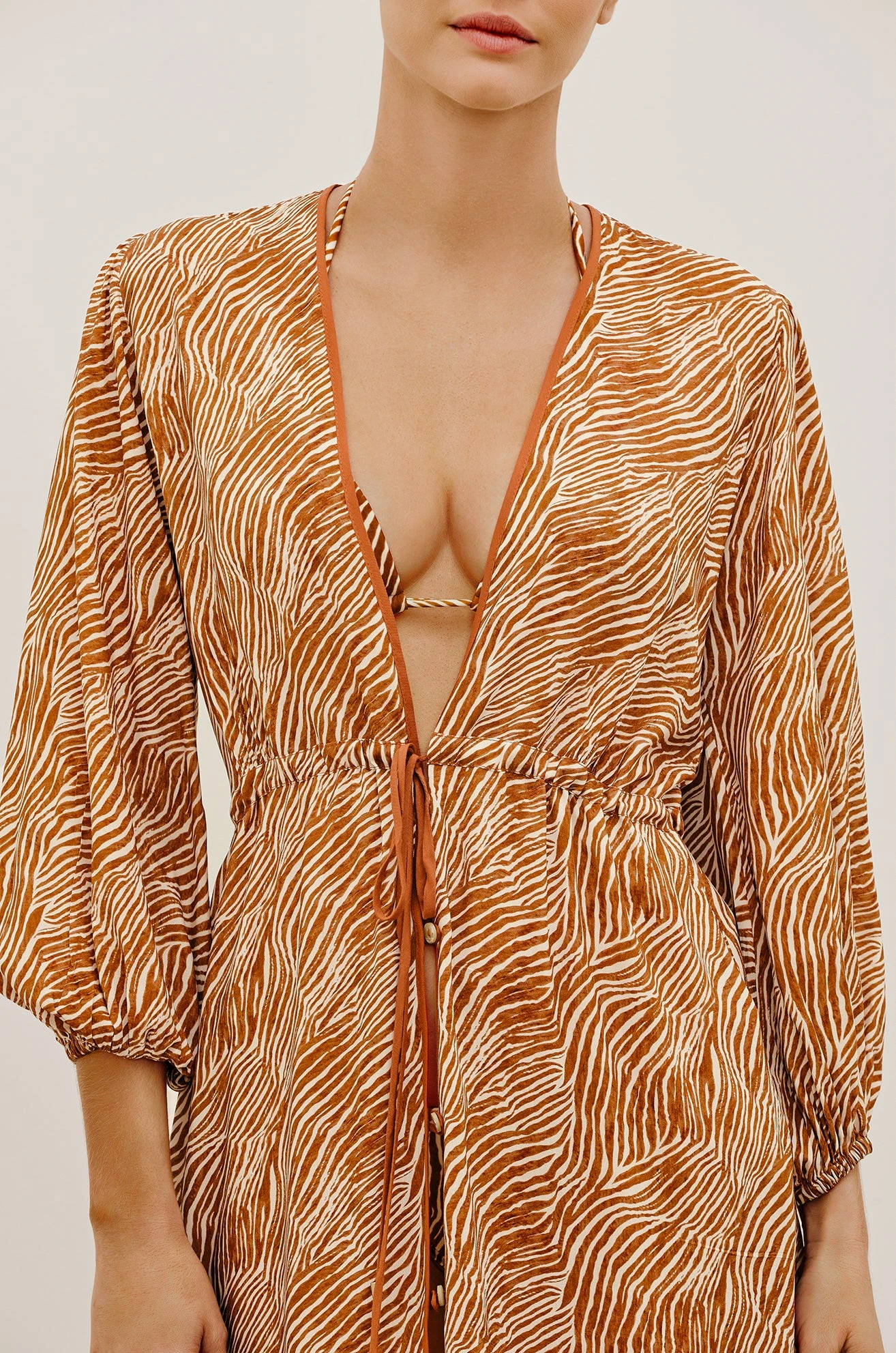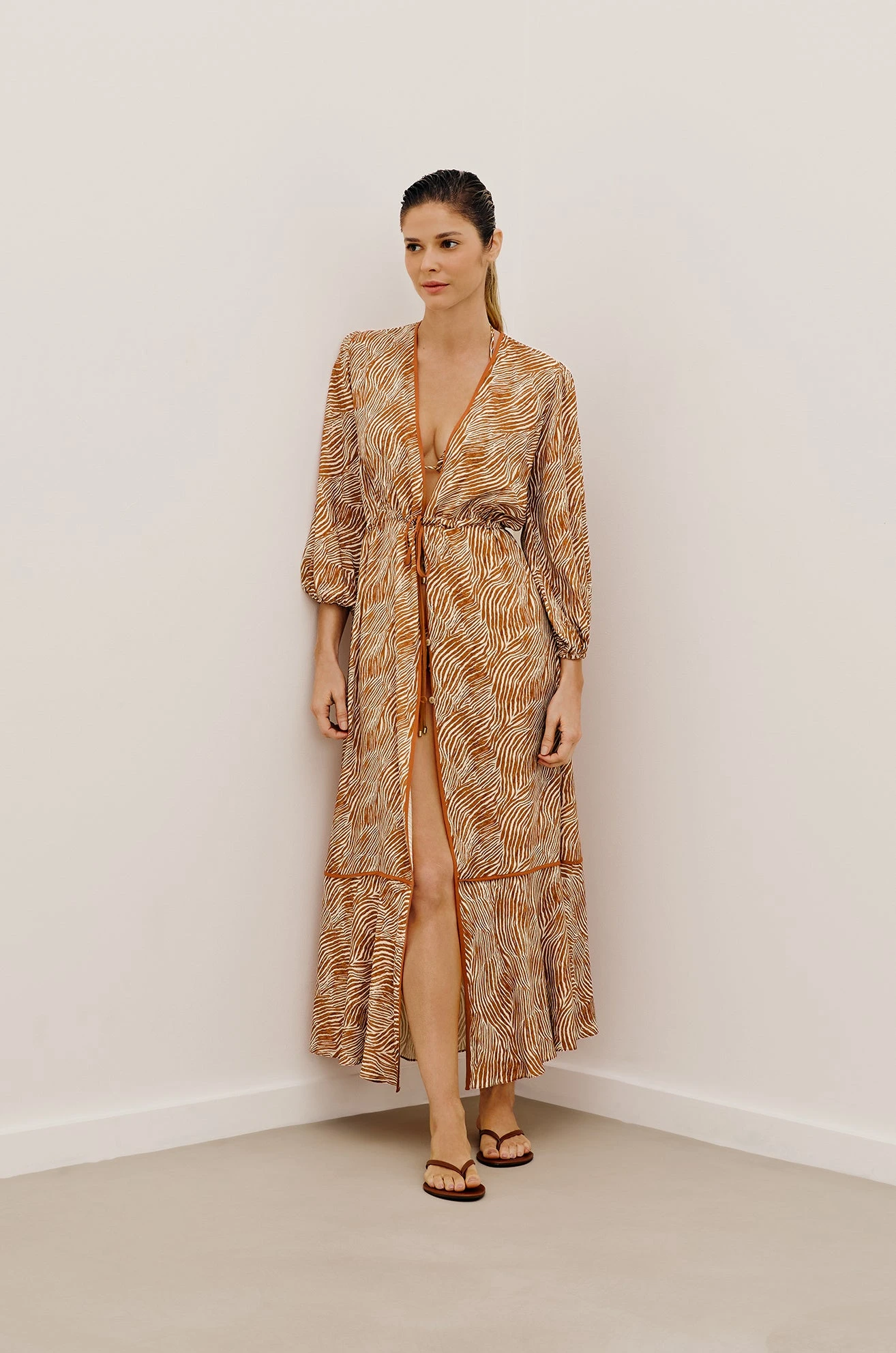 Match with same print swim pieces or wear as a kimono over white pants and cami for a bold day outfit.