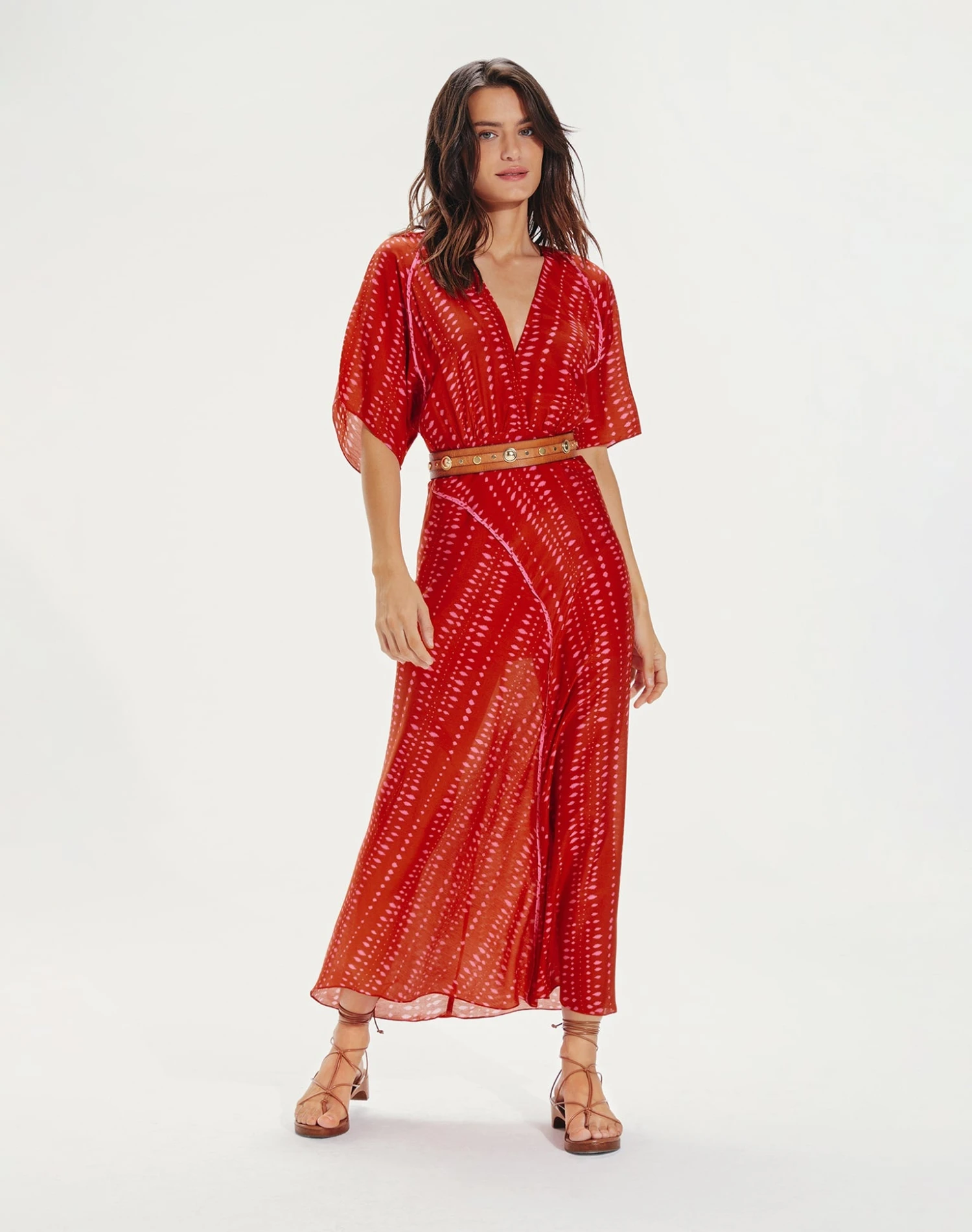 Easy airy maxi dress for a one-and-done look that will have you making an entrance anywhere you go. Designed in a linen blend of lightweight fabric with an adjustable belt to enhance your figure. An ideal piece for strolling on the beach or at a rooftop party.