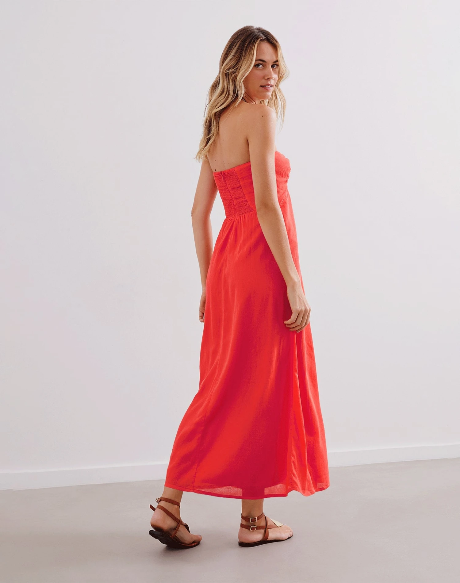 Style this luscious dress with dainty jewelry, sandals, and a chain bag for a resort-ready look.
