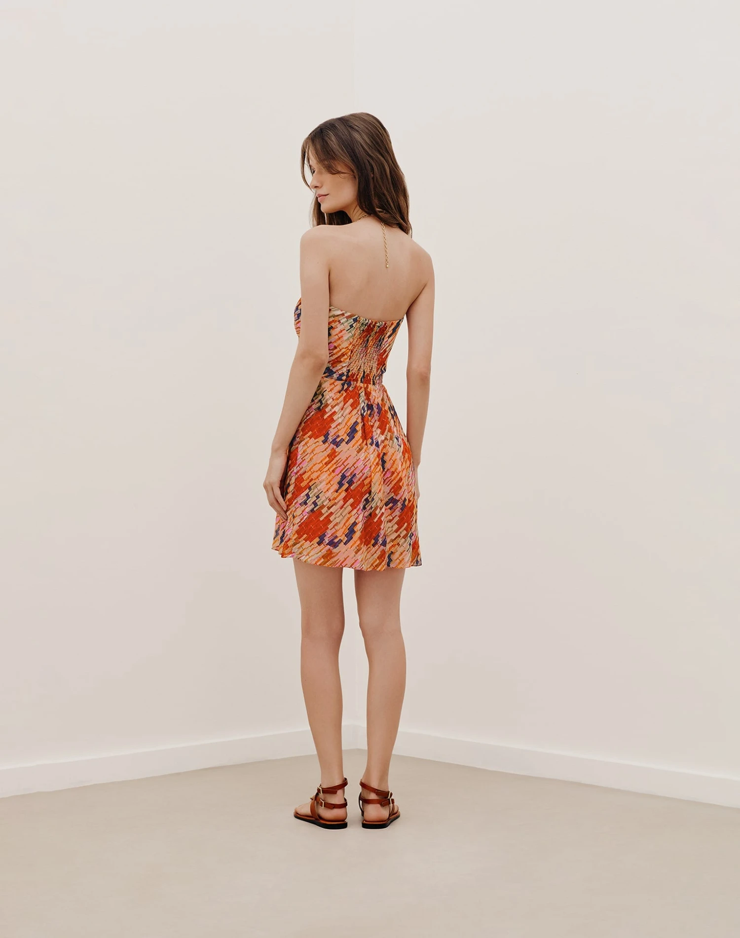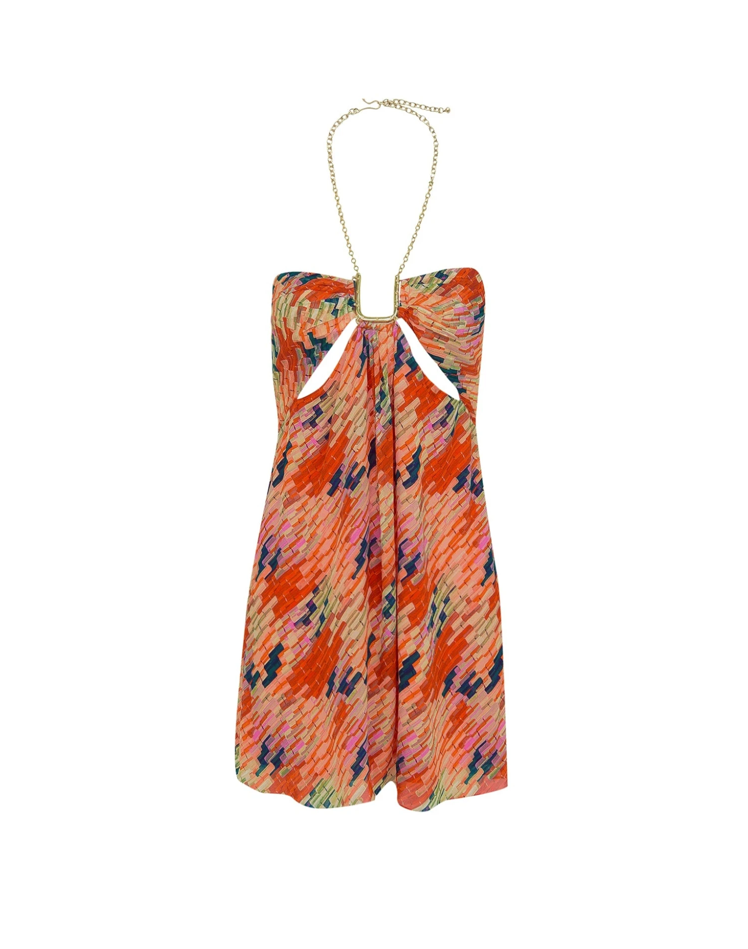 Easy to wear elegance is embodied in the Maureen Short Dress, a glamorous mini style that was made for you to indulge in luxury. Shaped in beautiful, lightweight silk-like fabric and embellished with subtle cut-outs below the bust and a showstopping gold-plated chain “U” neckline that will take your style to new heights.
