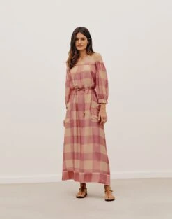 Effortless maxi dress with artisan made lux belt crafted with stretchy rope-like cord knotting and 24k gold charms; a stunning bold yet timeless piece.